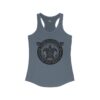 A high-quality print of this slim fit tank-top will turn heads. Bystanders won’t be disappointed – the racerback cut looks good on any woman’s shoulders.